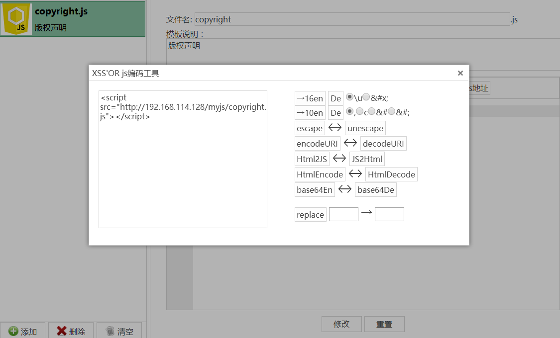 DATA_PATH/forbiddenIPList.dat文件 - 可以通过平台直接维护用于xss的js文件(详细说明见下)