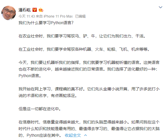 你是否在朋友圈看过Python培训的广告? 你在微博是否刷出过大佬在学Python的新闻?你会惊讶,为什么现在都在大肆宣传Python,今天我就给你答案。