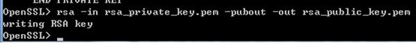 3)生成RSA公钥 输入命令:rsa -in rsa_private_key.pem -pubout -out rsa_public_key.pem,并回车,得到生成成功的结果,如下图: